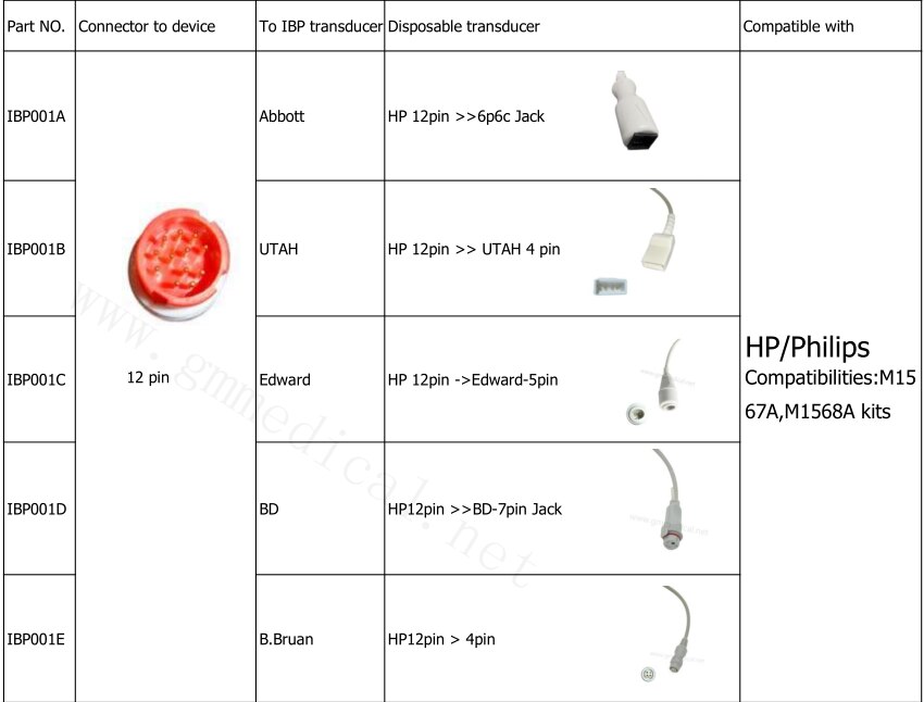 IBP001A :HP-yhteensopiva -Appott IBP -sovittimen kaapeli, 10ft, Hp12pin >>6p6c-liitin IBP001B :HP-yhteensopiva -UTAH IBP -sovitinkaapeli, HP 12pin >> UTAH 4 -nasta IBP001C :HP Compatible-Edward IBP -sovittimen kaapeli , HP 12pin ->Edward-5pin IBP001D :HP-yhteensopiva -BD IBP -sovittimen kaapeli, Hp12pin >>BD-7pin-liitin IBP001E :HP-yhteensopiva -B.Bruan IBP -sovittimen kaapeli, Hp12pin > 4pin Yhteensopivuus : M1567A, M1568A-sarjat