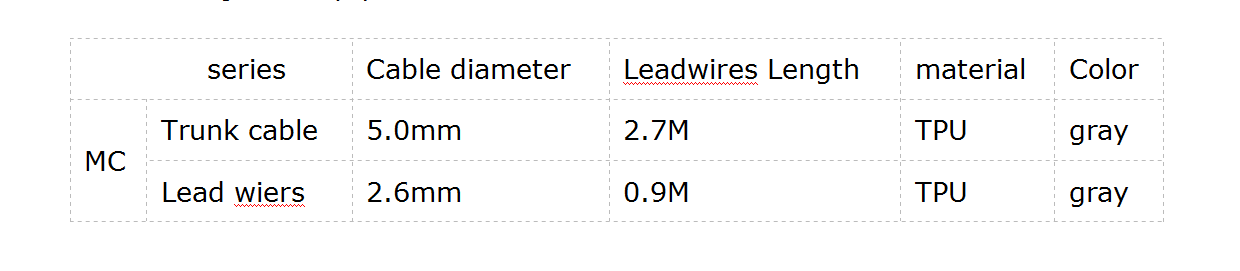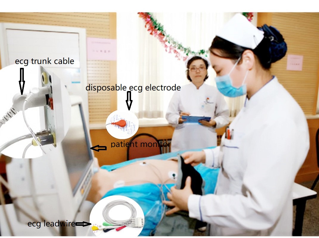Hakeudu moniparametriseen monitoriin / elektrokardiogrammilaitteeseen / harjoittaa juoksumattoa tai defibrillaattoria, siirtää ihmiskehon bio-sähkösignaalin. Potilaan kaapeleita ja elektrodien johtimia käytetään yhdistämään elektrodit, katetrit ja / tai anturit, jotka on sijoitettu potilaan sopiviin paikkoihin, valvontalaitteeseen yleistä seurantaa ja / tai diagnostista arviointia varten terveydenhuollon ammattilaiselta