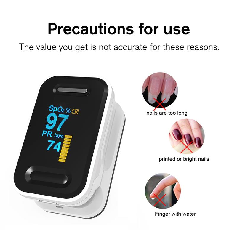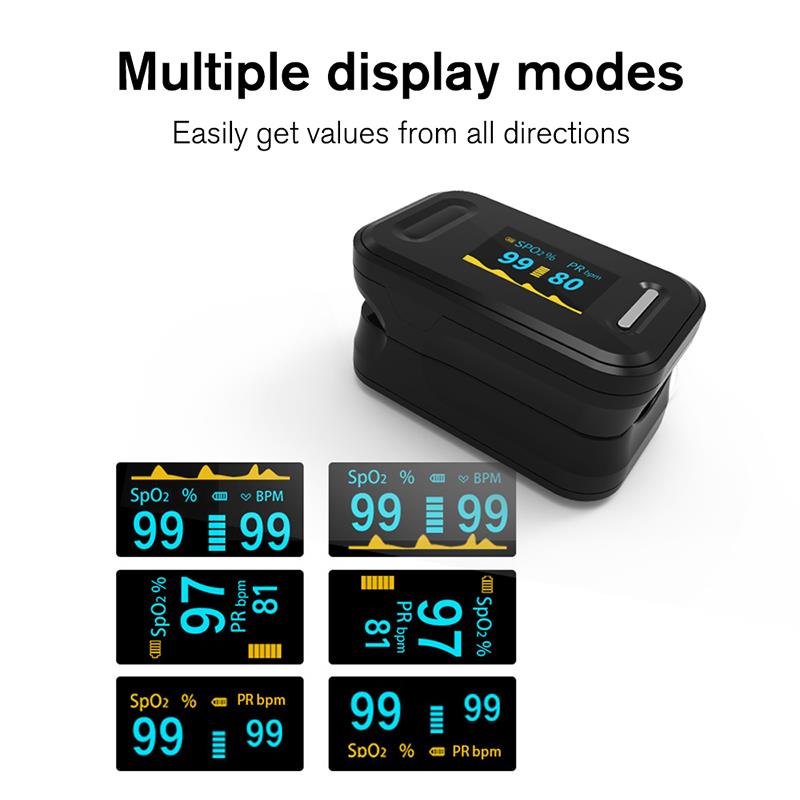 Sormen pulssioksimetri on edullinen ja tarkka tapa tarkistaa pulssi ja veren happikylläisyystasot. Se näyttää myös Pletysmografiaallon, joka takaa tarkkuuden. Itsesäätyvä sormenkiinnike plus yksinkertainen yhden napin muotoilu mahdollistavat helpon käytön. Mukana kantolaukku ja niska / rannejohto. Kätevä sairaanhoitajan ja lääkärin roikkuessa niskassa. Pieni kannettava koko on helppo käsitellä ja kuljettaa. Soveltuu päivittäiseen käyttöön, mittaa terveyttäsi milloin tahansa.