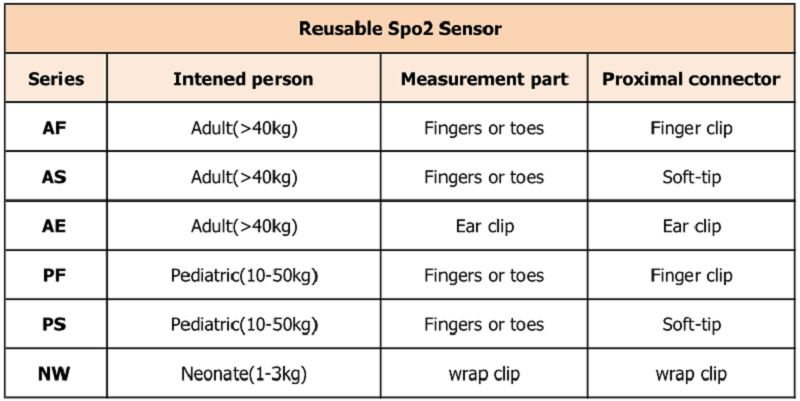 (PF&PS-sarja) Suuri valmistettu uudelleenkäytettävä spo2 -anturi on kytketty yhteensopivaan pulssioksimetriin valtimoiden hemoglobiinin (SpO2) ja pulssin (PR) funktionaalisen happikylläisyyden jatkuvan, ei-invasiivisen seurannan varmistamiseksi lapsipotilaille, jotka painavat 10-50 kg